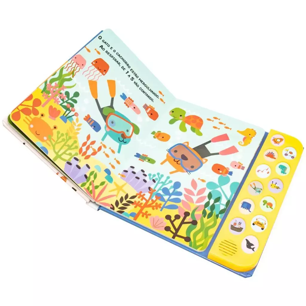 Livro interativo com botões sonoros que acompanham a narrativa.