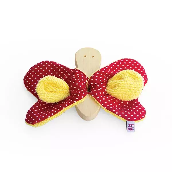 Estimule a exploração guiada: Mostre ao bebê como amassar as asas e tocar nas diferentes partes do brinquedo.